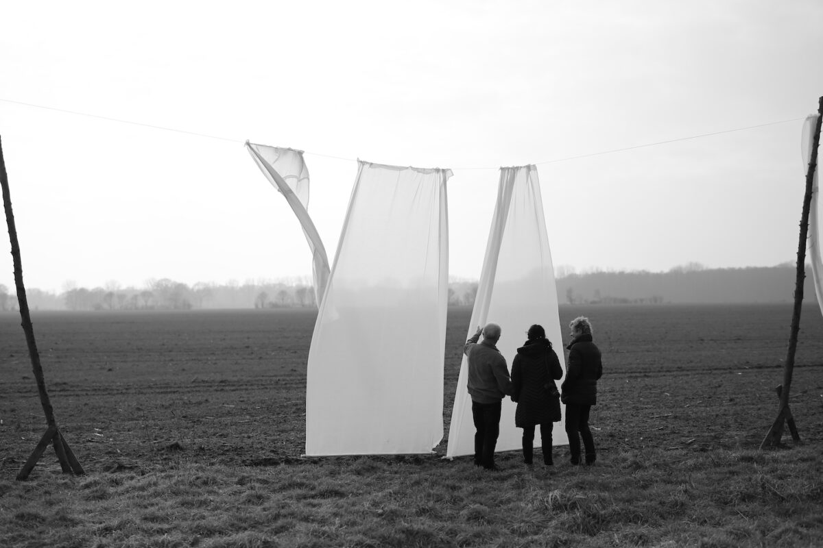 Kalbe, Vienau is the most distant village from any highway in Germany, and a place with only one hundred inhabitants, deeply connected with vast landscape and solitude. Der Milde Vorhang -The Curtain of the River Milde- is a search for defining Silence. How Silence speaks? What shows and what hides? Taking for departing point that curtains are a form of silence, to silence the view. By installing a public curtain on the fields the work searches to reveal the place in a new way.
