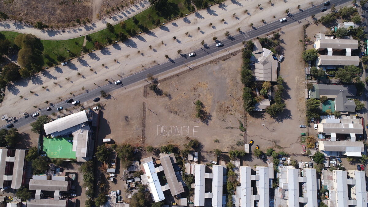 A sign written with chalk on the ground of an empty lot, states “Disponible”, spanish for Available, as an attempt to amplify the potential of the place. The quartier Villa Santa Teresa, was built as social housing solution , after a fllod in Macul’s ravine in 1993. After more thatn 20 years, the inhabitants recognize deep damages to the social fabric rooted on the unplannified grow of the quartier and its precarious housing conditions. The work is located in one of the most overpopulated districts of Santiago de Chile, where a vacant space, seems to be an opportunity to upgrade the quality of life of the surrounding area. By reverberating what is already obvious in the place, the artist seeks to engage the idea of Available Oportunity.