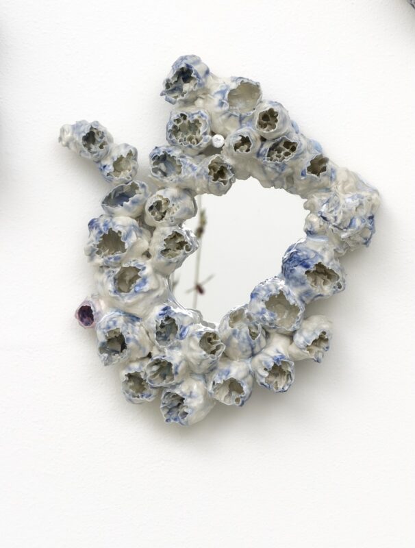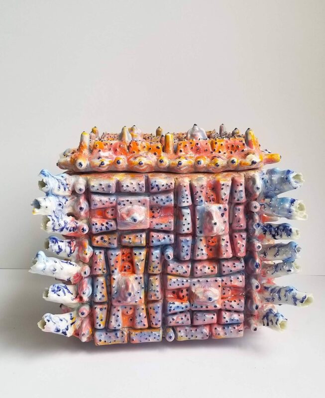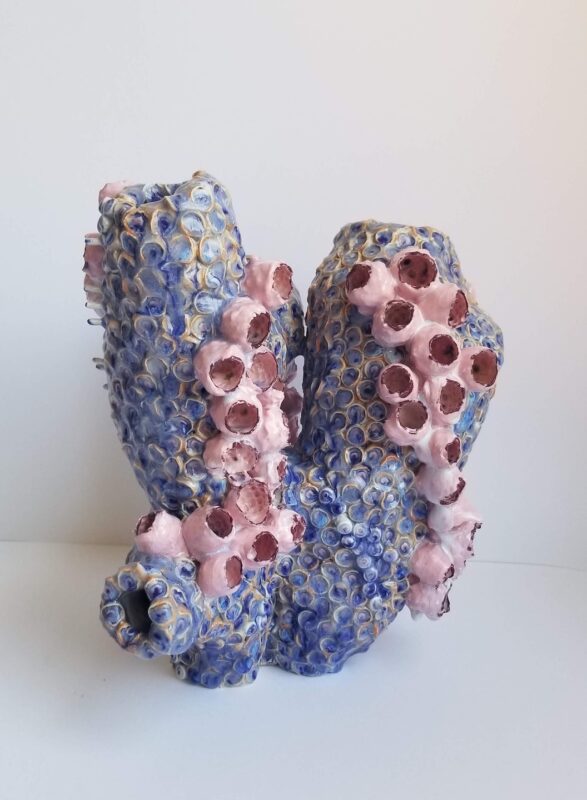 Kate Rusek is a multi-disciplinary artist assembling highly tactile sculptures, textile, garment, and installation with an emphasis on Craft and materiality. Her work transmutes wasting and waste matter into abundant, maximalist forms with dynamic biophilic textures. Her research and writing examines the connective edges and dissonant intersections between systems thinking and the natural world. Rooted in Post Natural Studies, her clay objects emerge from complex processes, where the manufactured relents to fluid chaos, and possess an alluring strangeness that emerges when the body recognizes a connection to our planet’s vitality. Rusek’s sculptures are receptacles of material histories, calcified memory, and imagined futures; a menagerie of symbiotic ecosystems where small parts are essential to a larger harmonious whole.