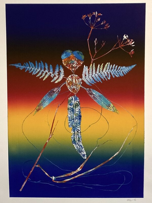 Over the last 40 years, Iris has been accompanied and supported by her husband, George, and together they established a new home and print studio in North Leitrim. Many of the works on show in the exhibition are made in response to the plant life and flora indigenous to the landscapes of the North West and are a testament to the artist’s deep sense of connection to nature and its phyto-therapeutic healing powers (1). This interest in holistic principles is a central focus of her work and guides her search for endogenous growth patterns in nature which she utilises directly in the printmaking process.