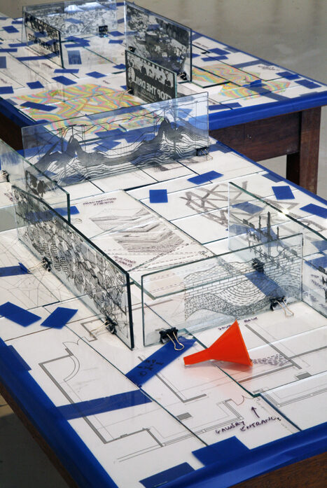 As the present exhibition sets out to expose, this fragility and uncertainty is nowhere more disturbingly encountered than in the process of ‘geological fracturing’ for the purpose of extracting gas. Exhibition works such as 'Fence Diagram', 'Fractured Landscape', ‘Complex Studio Landscapes’ and ‘Fracture’ dramatize how pressurized liquid pollutants might travel, and pose a threat, to rock strata, water aquifers and surface life-forms exposed to its unpredictable affects. Both a meditation on the artist’s own experience of fracking, which threatened his home county of North Antrim, and a timely warning against unbridled quasi-scientific confidence in its safety - Connolly’s exhibition re-enacts and embodies the unpredictability and risk immanent to the fracking process.