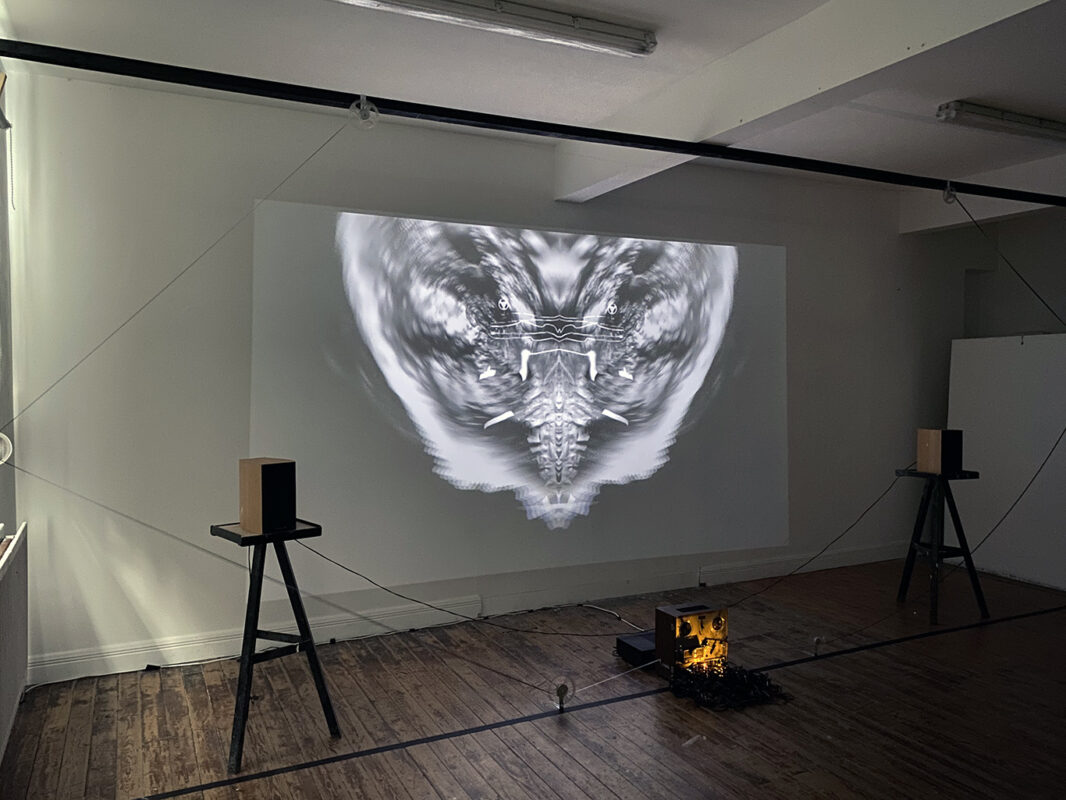 New experimental works, amplify the material, animist and ecological conditions responding to cave ecology and sensory feedback from Pollnagollum and Boho cave recordings. Touch and sound become a central focus, where unseen bio-ecological narratives touch upon the Pythagorean four becomings; mineral, vegetable, animal and human, are subject to balance, discord within somatic space. The works activate primal breathing, repetitive movement, reboots our nervous system and amplifies the silences arising from the centre of our bones. The works are fragmented, they are soundscapes with industrialist rhythms, a suspension of temporal pasts. Durational elements remain as afterimages of a post-psychedelic fade. Cave archaeology suggests we evolved with darkness; we seek darkness and that it is part of our nature, our make-up. In our technological epoch, we ask if an earth reboot will lead to new sensory priorities, realigning towards our need for growth without light.