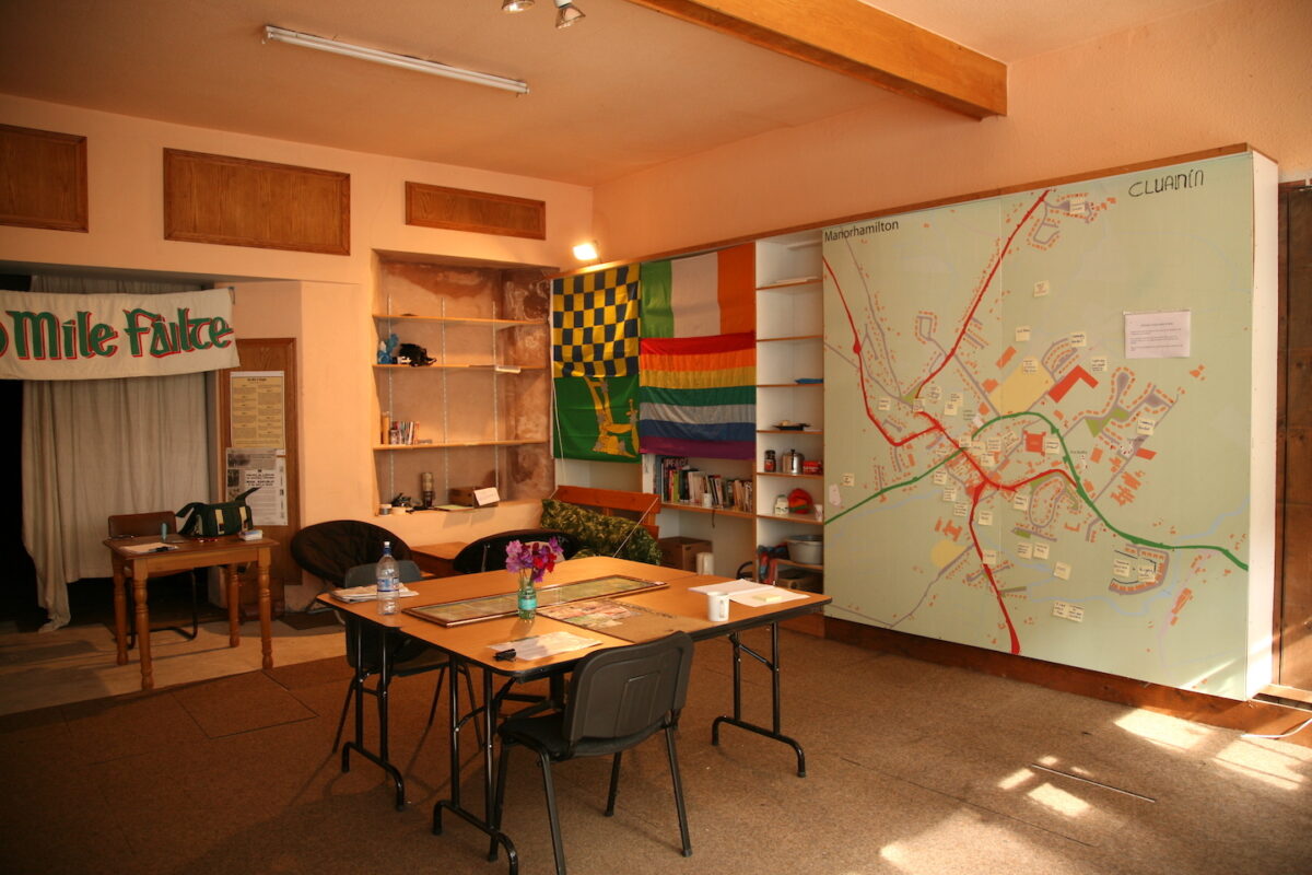 For the New Republic Niall Walsh, invited the citizens of Manorhamilton to propose their own ideas and images of what they imagined a new republic might look like. There were a number of processes by which this took place: using templates from a range of countries to compose designs for a flag, currency and stamps; collecting short articles that the artist later assembled into a new constitution; informal discussions based on a range of political and philosophical models and in response to daily screenings of a variety films and documentaries.