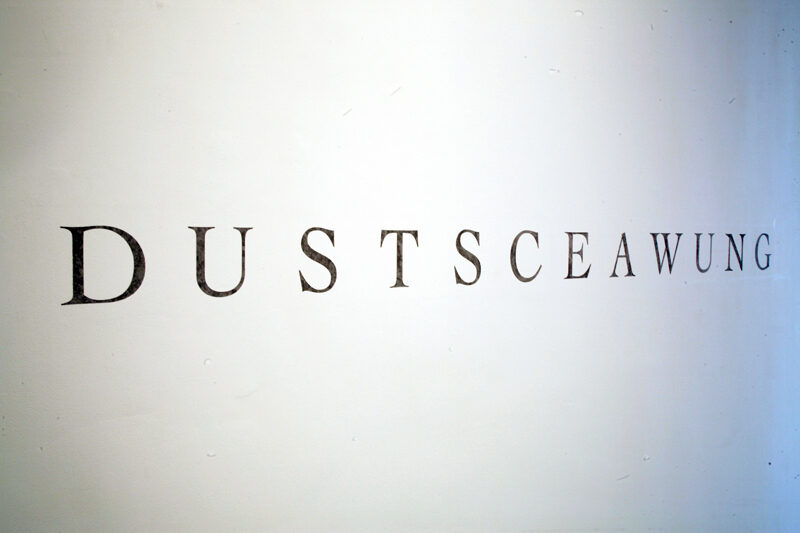 From dūst (“dust”) + sċēawung (“inspection, contemplation”)