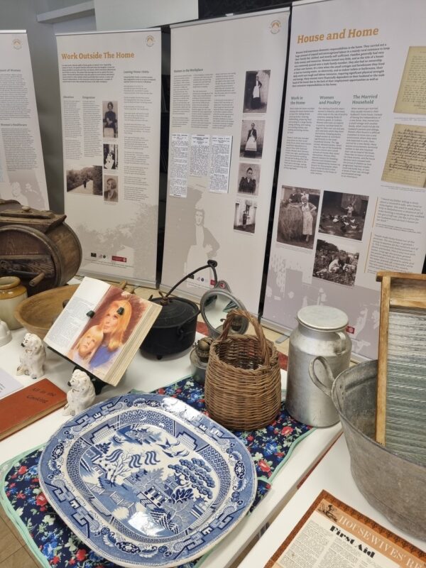 The Leitrim Women Through Time project created Leitrim's first Pop-up Women’s Museum in 2023. The Pop-Up Museum mobilises and promotes the histories and experiences of rural women from the county for an inclusive public audience. This temporary museum of women’s history explores the lives of Leitrim women over the past two hundred years. The museum includes a large collection of objects from rural women’s history - with examples from women’s work inside and outside the home, women’s craft, and women’s personal lives. The Museum encourages people to share stories and memories of ordinary rural women for preservation in the “Leitrim Women Through Time” project archive, and demonstrates the value in recording these often-overlooked voices and experiences.