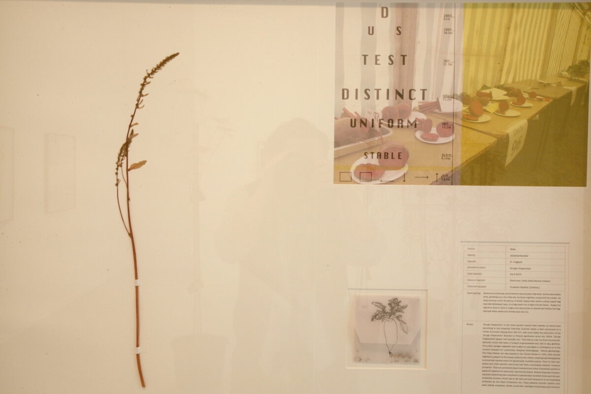 Since 2010, Mackey has been growing a variety of plants sourced from individuals and seed saving organizations in Ireland and abroad. Each year she select’s a number of plants as they come into flower, which are dried and pressed - a process not normally developed for vegetable matter. This on-going work Seed Boards contain an amalgamation of dried matter, seed bags, drawings, seed saving techniques and photo-documentation, with each board uncovering a specific issue around the cultural, scientific and economic value of seeds. Living Fields is a live installation of various heritage plants from Ireland and abroad, which are in the process of going to and/or, in seed.